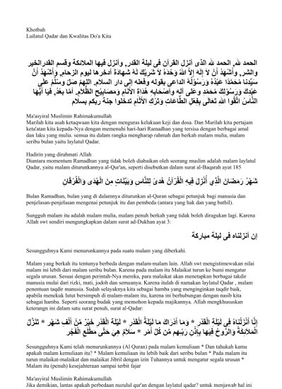 Materi Ceramah Lailatul Qadar : Top Pdf Malam Lailatul Qadar Adalah 123dok Com - Rasulullah saw memperbanyak ibadah dan amal saleh pada malam lailatul qadar.