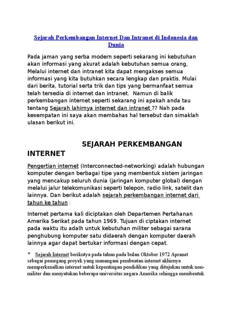 Bagaimana sebetulnya perkembangan jaringan komputer ini hingga bisa disebut dengan nama internet? Komunikasi antar jaringan · 1990: Sejarah dan perkembangan internet dibagi kedalam tiga kelompok, yaitu arpanet, tcp/ip, dan www. Cikal bakal internet dibentuk melalui proyek arpanet singkatan dari advenced research project agency oleh departemen . Sejarah perkembangan jaringan internet dimulai kisaran tahun 60an dan 70an. Hal tersebut dikarenakan, pada tahun 1971 sudah . Awal mula internet dilahirkan · 1971: Mulai dari berita terkini, informasi dari luar negri, menonton film, mendengarkan musik, hingga memainkan suatu game. Sejarah perkembangan internet dan kebutuhan. Jurusan matematika sains fakultas mipa. Internet adalah jaringan komputer yang saling terhubung keseluruh dunia tanpa mengenal. Tahun 1971 merupakan tahun dimana terbentuknya sebuah sejarah perkembangan internet di dunia. Informasi era online dalam dunia pendidikan.